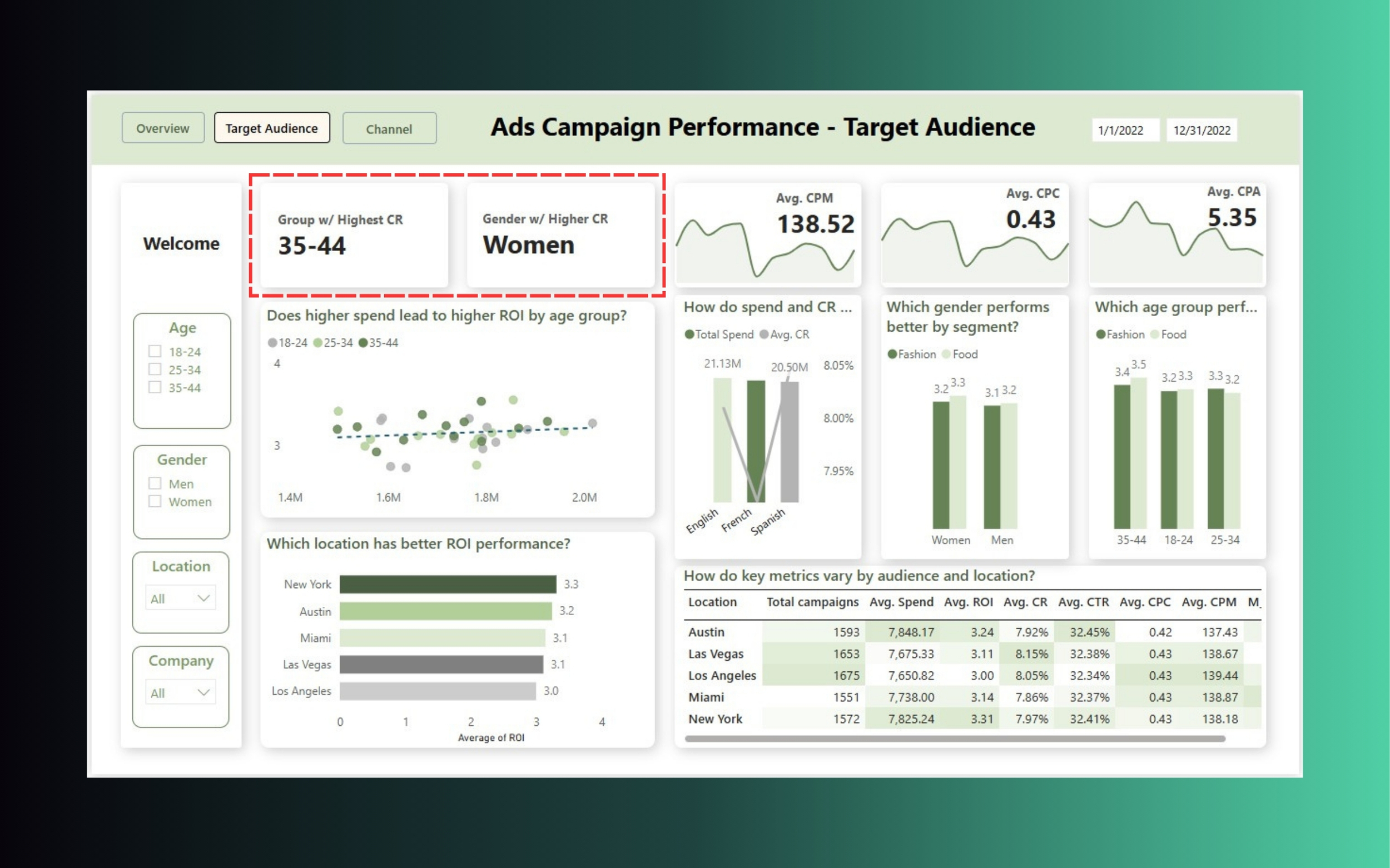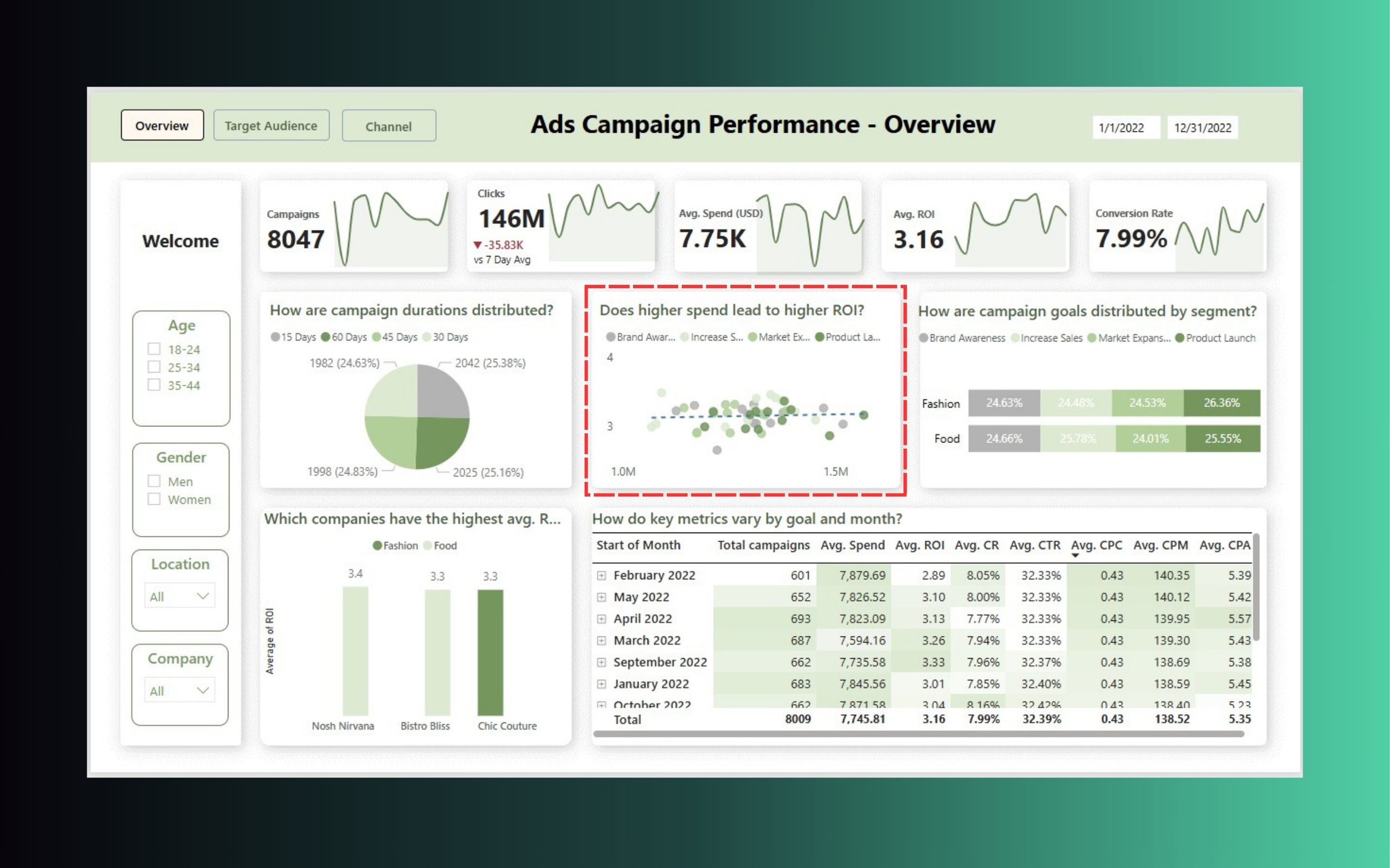 Giả sử bạn đang xem dashboard Marketing với 3 tab: Overview – Target Audience – Channel. ROI giảm dù chi tiêu tăng – vậy nguyên nhân nằm ở đâu?