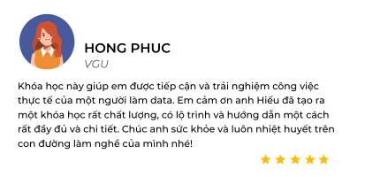 Hiện tại bên mình không cấp chứng nhận cho học viên hoàn thành khoá học nhưng sẽ có project cho các bạn thực hành và thêm vào data portfolio. Các projects này sẽ giúp các bạn nắm chắc được kiến thức và ghi điểm hơn trong mắt nhà tuyển dụng!