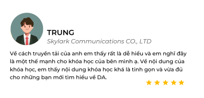 - Vì vậy, không thể chỉ tham gia một vài khoá học mà bạn có thể lập tức trở thành DA được nhé.
