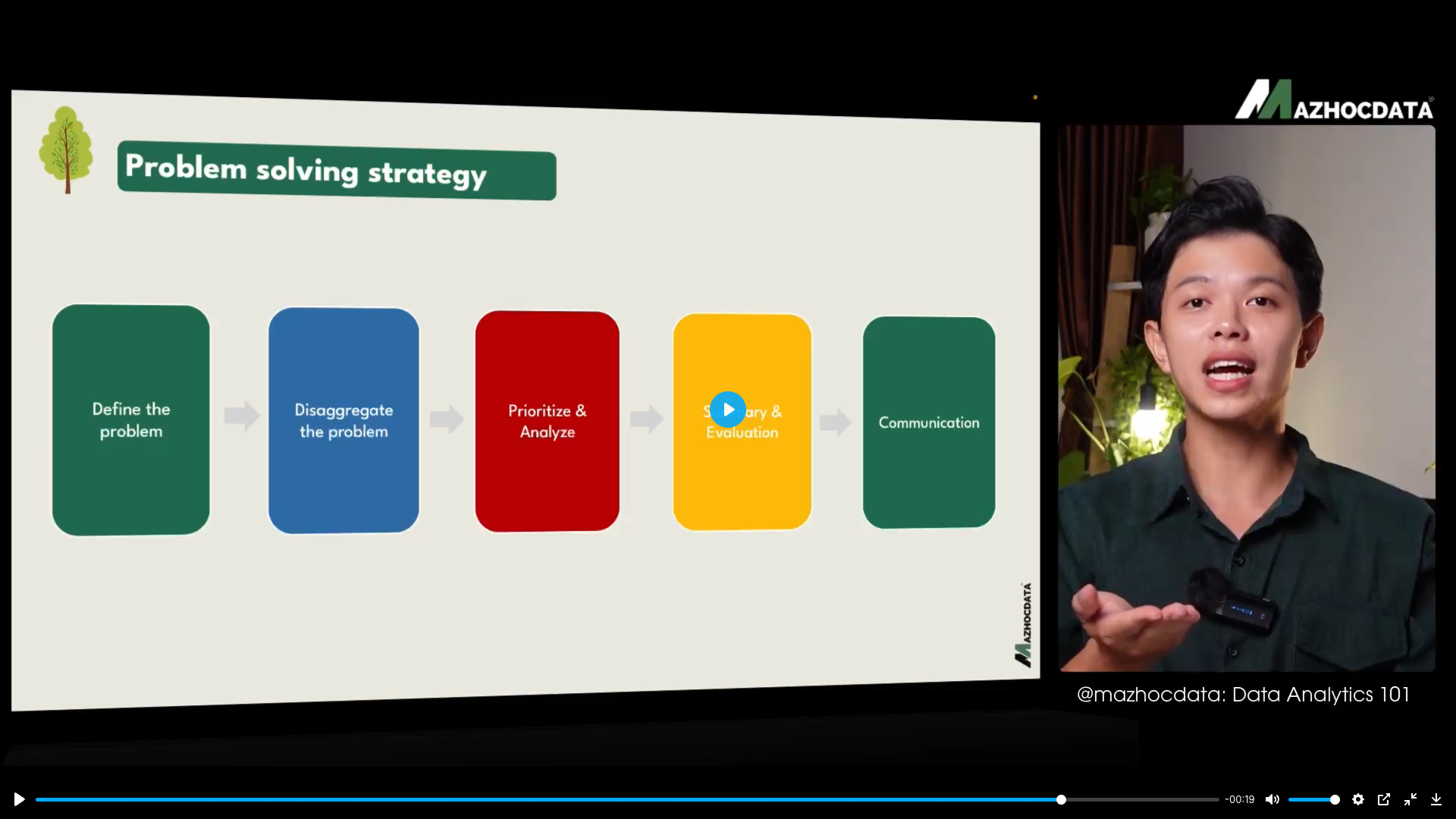 - Để trở thành một Data Analyst thì cần có technical lẫn soft skills. Chuỗi khoá học này được Maz xây dựng xoay quanh các technical languages. Đồng thời, đánh mạnh vào kỹ năng cốt lõi của một DA – kỹ năng giải quyết giải quyết vấn đề.